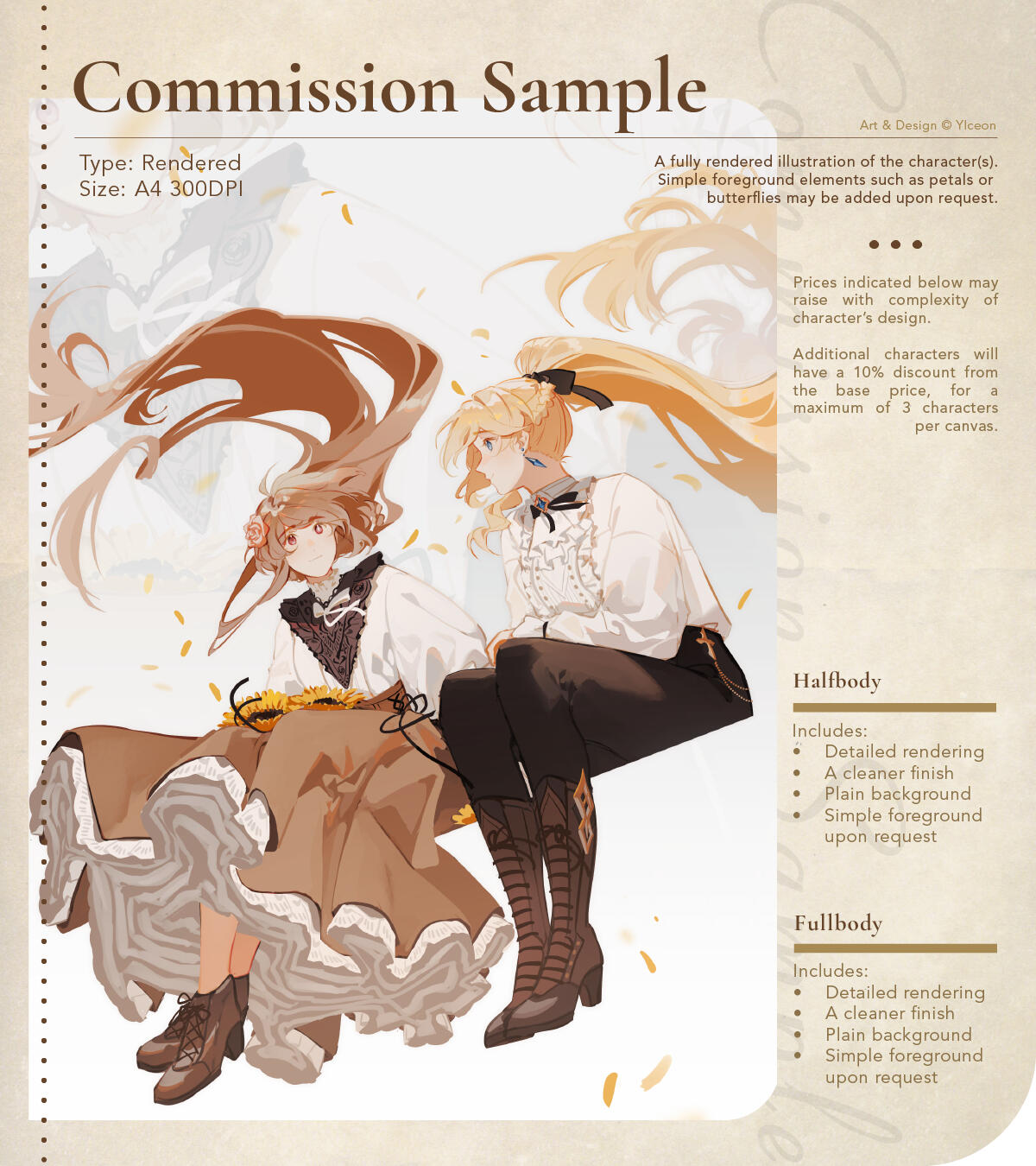 Please keep in mind that not all characters may fit my style and that may impact the quality of the finished product. I primarily work best with characters who have effeminate and flowy features. That said, I will always try to deliver the client's expectations to my capacity.